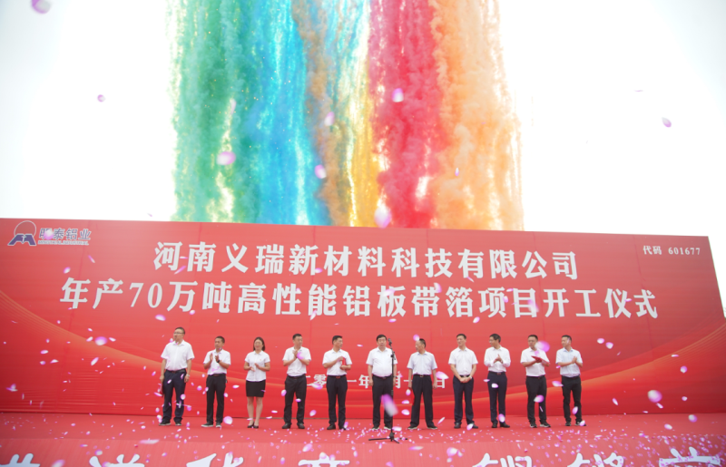 7月18日,明泰鋁業舉行河南義瑞新材料科技有限公司年產70萬噸高性能鋁板帶箔項目開工儀式。