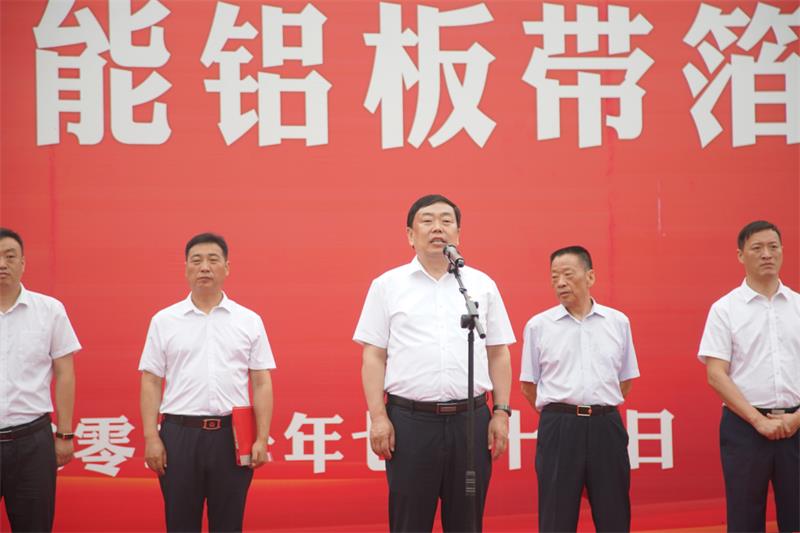 儀式上,王軍偉介紹項目情況。義瑞新材年產70萬噸高性能鋁板帶箔項目是明泰公司繼“1+1熱軋項目”、“電子材料產業園項目”、“明晟超硬材料項目”之后,實施的又一精品亮點工程。該項目以高標準建設熱軋生產線、立體智能倉庫以及自動化冷軋、箔軋生產線,打造數字智能一體化的高科技智能化工廠。開拓軍工、航天、交通、新能源、新材料等新領域,實現產品升級換代。